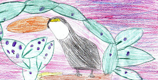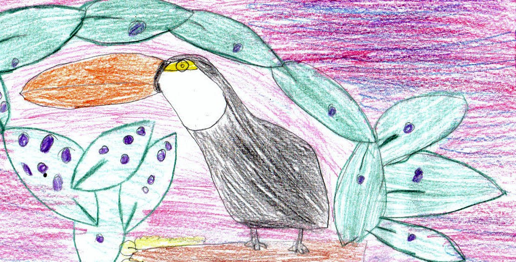 O meu bico tem um terço do comprimento do meu corpo. Os nossos casais são brincalhões e lançam frutos ao ar. Os meus primos atiram bagas uns aos outros. Com sons altos e semelhantes ao coaxar de uma rã, nós, tucanos, comunicamos entre nós quando voamos em busca de alimentos.